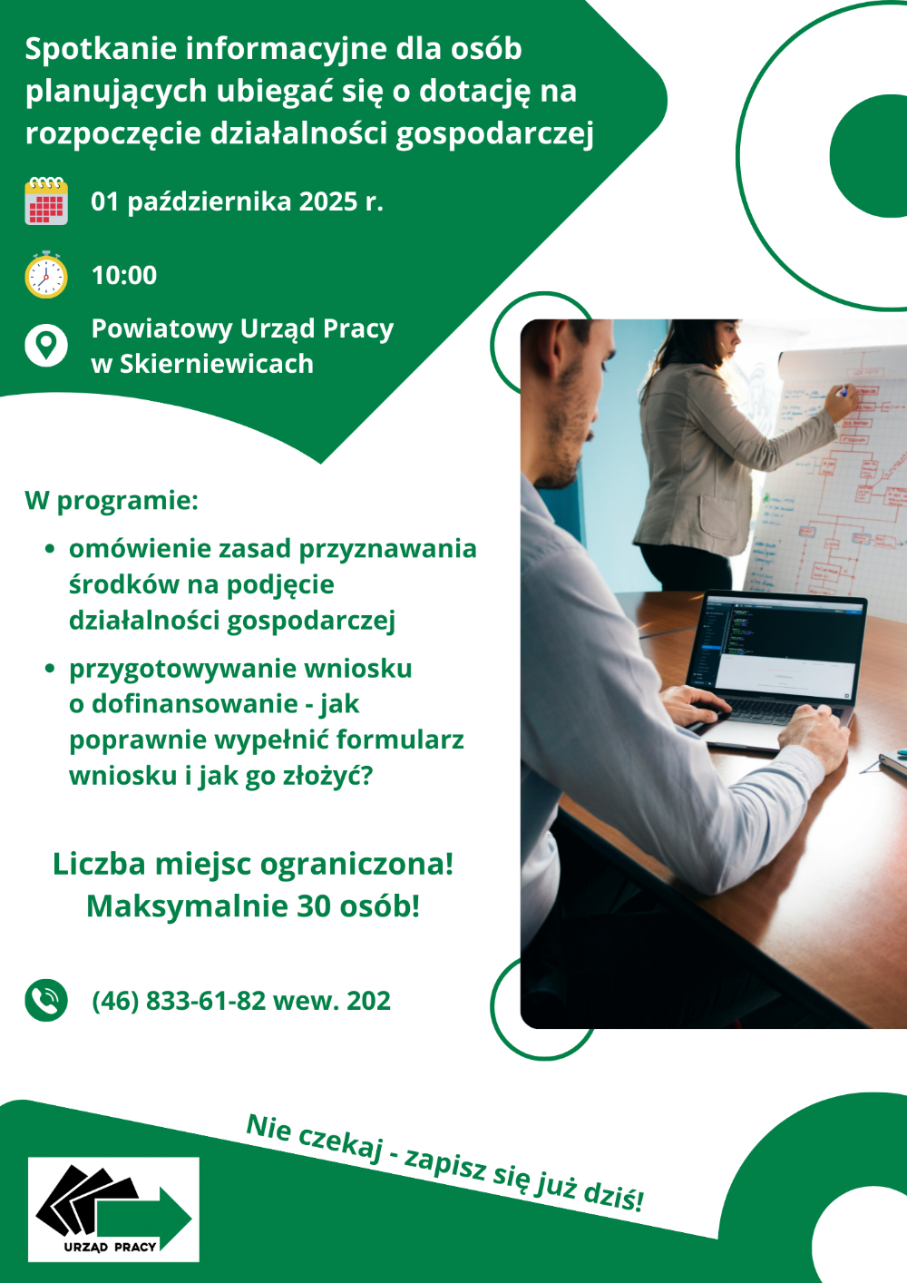 Zapraszamy na spotkanie informacyjne dla osób planujących ubiegać się o dotację na rozpoczęcie działalności gospodarczej!